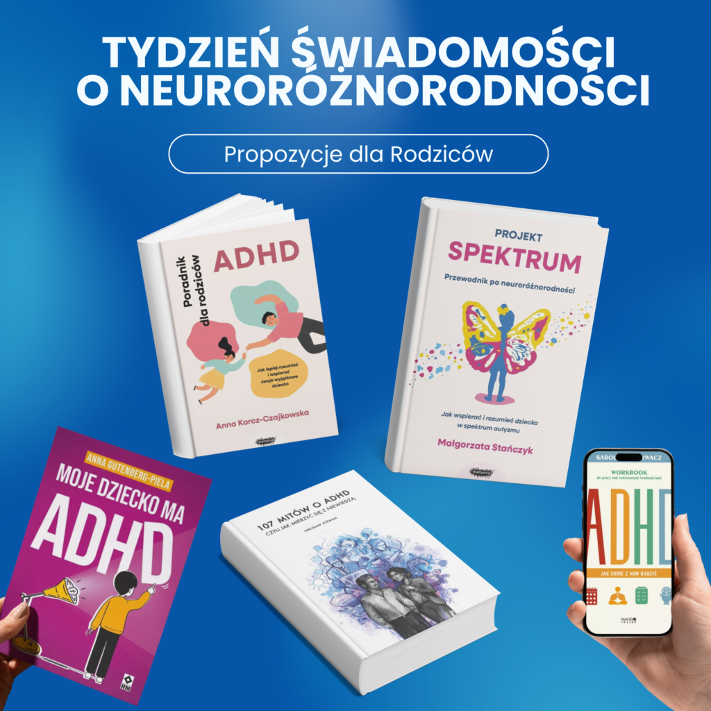 Przygotowaliśmy tytuły zarówno dla dzieci, młodzieży, jak i dla dorosłych – pozycje, które mogą być wartościowym wsparciem nie tylko dla rodziców dzieci neuroatypowych, ale dla wszystkich, którzy chcą lepiej rozumieć neuroróżnorodność i świadomie budować bardziej wspierające środowisko.