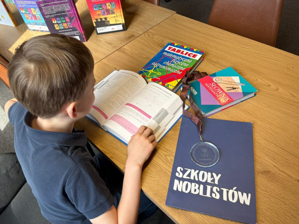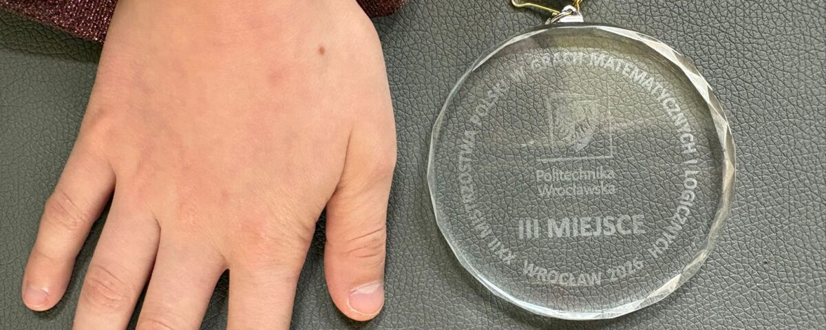 Z ogromną radością i prawdziwą dumą ogłaszamy wspaniały sukces naszego ucznia – Mateusza z klasy 4! Dzięki swojej determinacji, pasji i wytrwałej pracy sięgnął po medal, zdobywając trzecie miejsce w Międzynarodowych Mistrzostwach Polski w Grach Matematycznych i Logicznych w kategorii klas 4–5. To osiągnięcie jest dowodem na to, że ciężka praca i wiara w siebie prowadzą na sam szczyt!